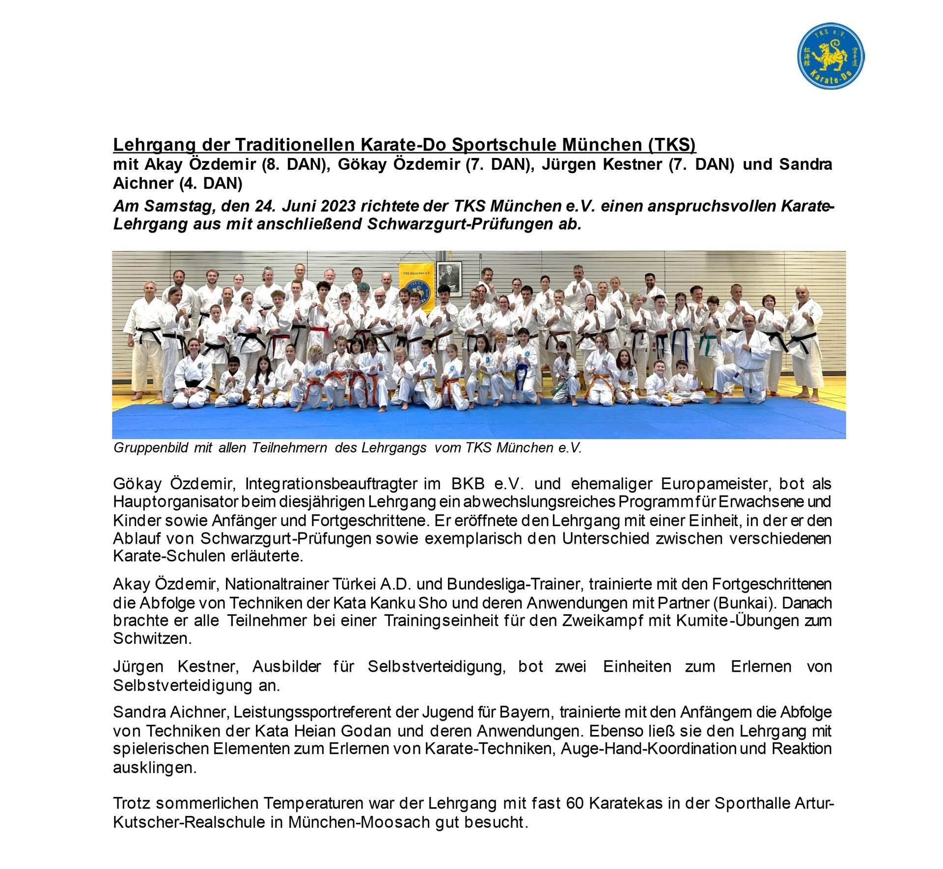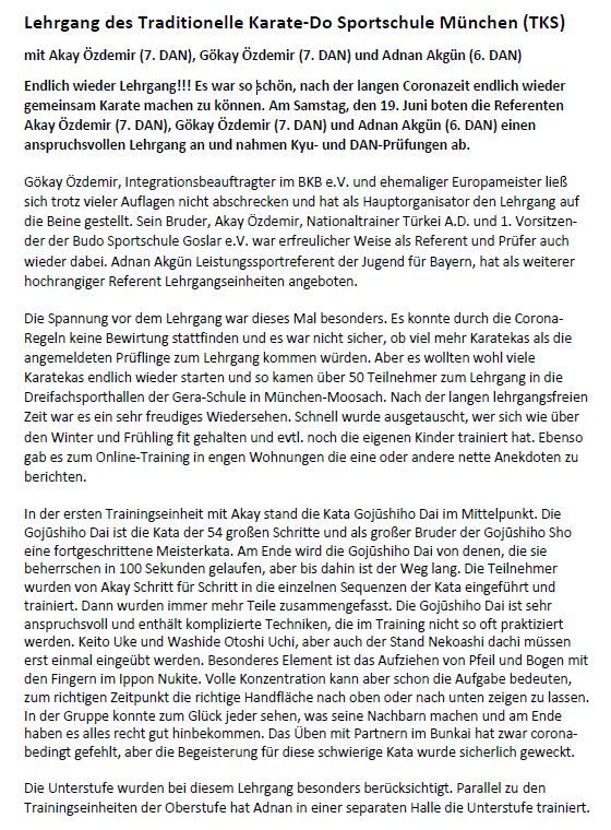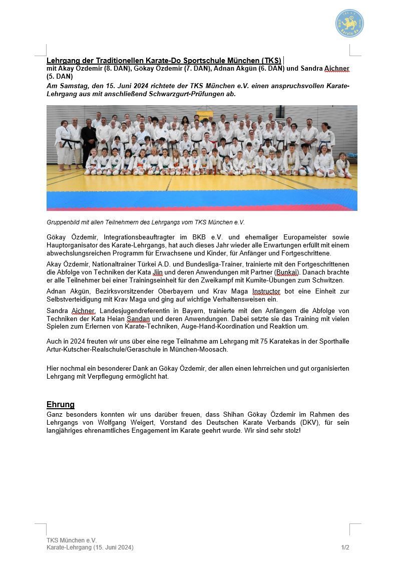 Karate-Lehrgang TKS München am 28.06.2025