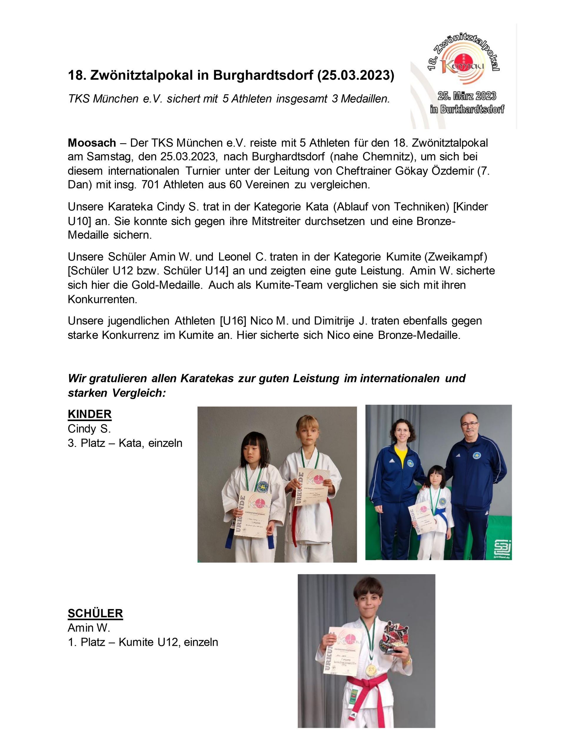 TKS München e.V. holt insgesamt 5 Medaillen.
