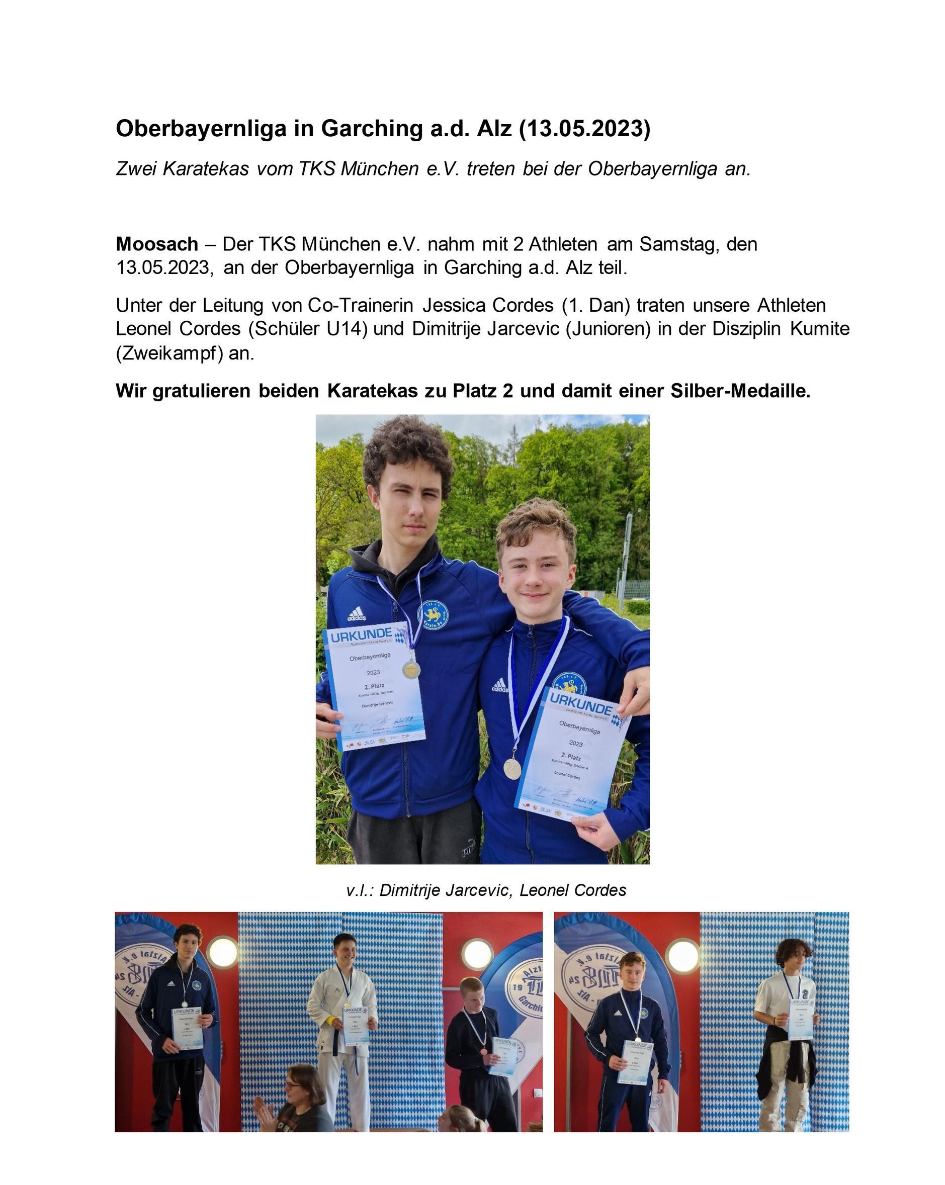 Unter der Leitung von Cheftrainer Gökay Özdemir startete der TKS München mit sieben Athleten am 16./17. Juli 2022 bei der Oberbayrischen Meisterschaft in Garching an der Alz und erreichte insgesamt 9 Platzierungen.