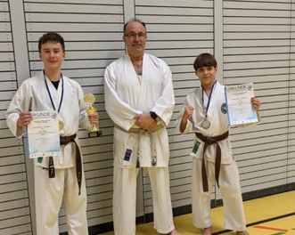 - Amin Wenk zum 3. Platz Kumite Mannschaft Schüler A Männlich und 2. Platz Kumite -40 kg Schüler A Männlich