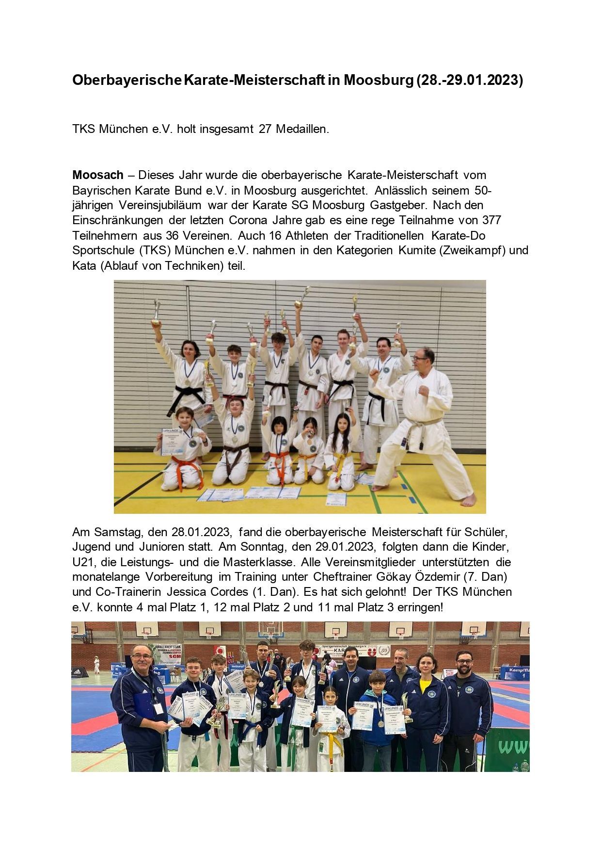 Am Samstag, den 27.01.2024, fand die oberbayerische Meisterschaft für Schüler, Jugend und Junioren statt. Am Sonntag, den 28.01.2023, folgten dann die Kinder, U21, die Leistungs- und die Masterklasse. Durch die monatelange Vorbereitung und das harte Training des ganzen Vereins unter Chef-Trainer Gökay Özdemir und Co-Trainerin Jessica Cordes konnte der TKS München e.V. 5 mal Platz 1, 8 mal Platz 2 und 14 mal Platz 3 erringen!