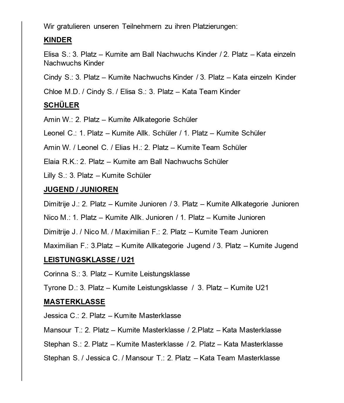 - Maximilian Fritz zum 3. Platz Kumite Allk. Junioren Männlich, 2. Platz Kumite Mannschaft Junioren