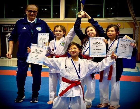 - Liv So, Elisa Svorencikova, Mariella Tille, Cindy Sheng - Platz 3 - im Kumite-Team Schüler B